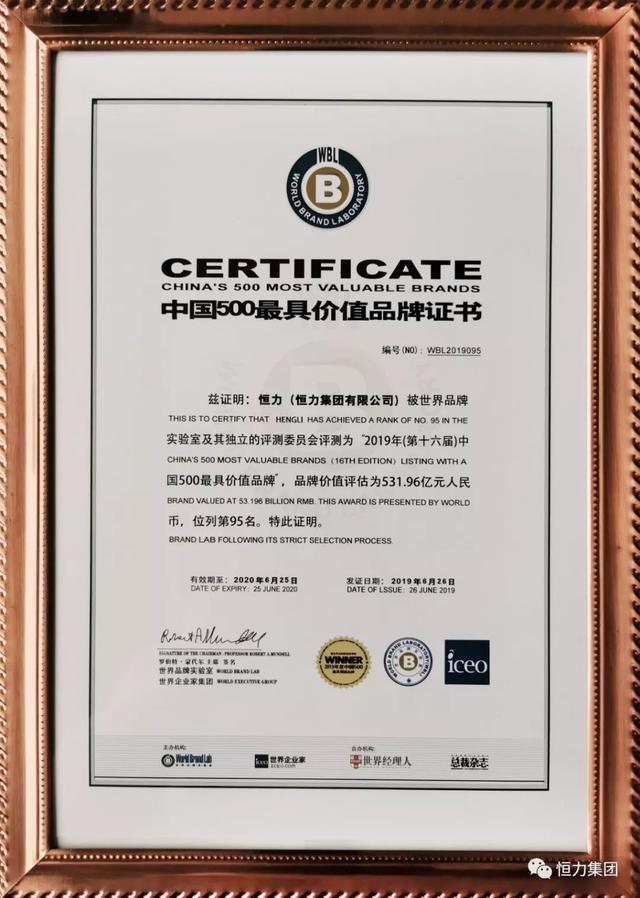 6月26日下午,由世界品牌實(shí)驗(yàn)室(World Brand Lab)主辦的第十六屆“世界品牌大會(huì)”在北京舉行。會(huì)上發(fā)布了2019年《中國(guó)500最具價(jià)值品牌》分析報(bào)告,恒力集團(tuán)“恒力”品牌再度入圍2019年“中國(guó)500最具價(jià)值品牌”,以531.96億元位列第95位。