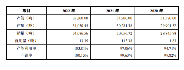 公司去年產(chǎn)能約為3.28萬(wàn)噸,產(chǎn)能利用率還比較高,去年為103.81%。