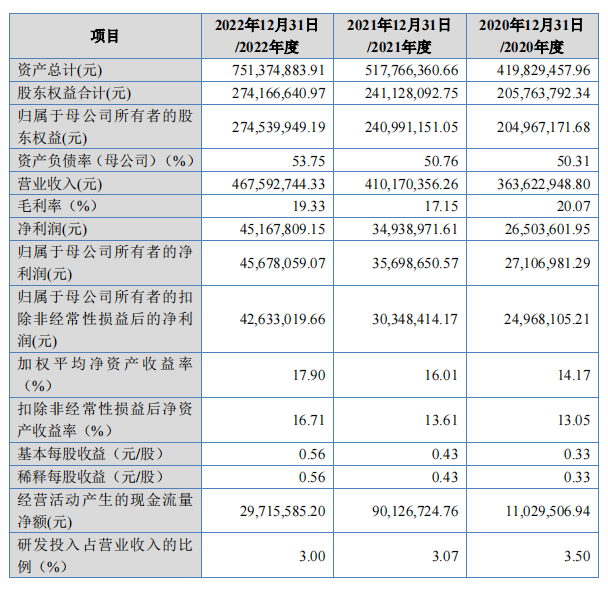 2022年度,公司實(shí)現(xiàn)營(yíng)業(yè)收入4.68億元,同比增長(zhǎng)14%,實(shí)現(xiàn)凈利潤(rùn)4568萬(wàn)元,同比增長(zhǎng)28%。其中外銷(xiāo)占比約為9.98%。此外公司應(yīng)收款較高為2.88億(2022)。