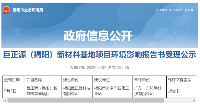 建設項目名稱:巨正源(揭陽)新材料基地項目