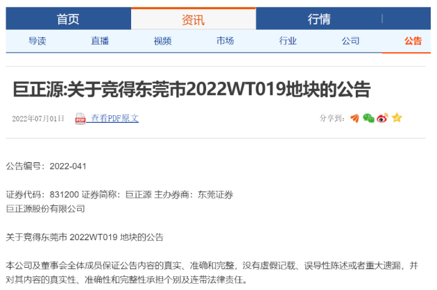 7月1日,巨正源發(fā)布"關于競得東莞市 2022WT019 地塊的公告"。據(jù)介紹,其子公司東莞巨正源于 2022 年 6 月 29 日在東莞市公共資源交易中心競得編號為 2022WT019 的地塊,該地塊位于東莞市沙田鎮(zhèn)和安村,用于 120萬噸/年丙烷脫氫制高性能聚丙烯項目二期工程的建設。