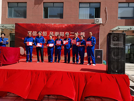 公司總經(jīng)理、工會主席為慶典致辭,慶典上員工們表演了精彩節(jié)目《感恩的心》等,為了感恩回報服務(wù)企業(yè)多年的老員工,公司還為每位服務(wù)十年以上的老員工頒發(fā)了《服務(wù)企業(yè)優(yōu)秀員工》證書和獎金,還為每位員工頒發(fā)了精美的紀念品。