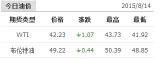 2015年8月14日國際原油價(jià)格表