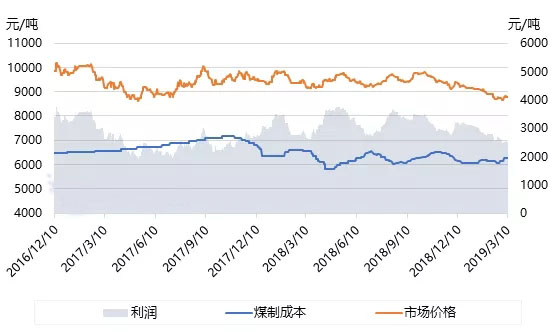 由上圖可見,進(jìn)入2019年,煤制聚乙烯的生產(chǎn)利潤逐漸減少。而增值稅的降低,對西北生產(chǎn)企業(yè)來說,意味著運輸成本或有所降低,如當(dāng)前運送到山東地區(qū)銷售大約需要300元/噸的運輸成本,降稅后或?qū)p少3元/噸,這就進(jìn)一步增加了煤化工生產(chǎn)企業(yè)的利潤空間。