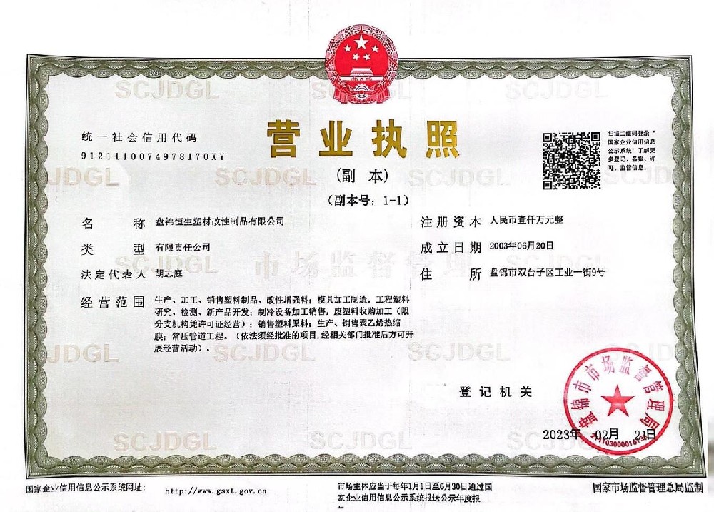 盤錦恒生塑材改性制品有限公司坐落在遼寧省盤錦精細(xì)化工產(chǎn)業(yè)開發(fā)區(qū),總占地面積21000平方米,年生產(chǎn)能力在 3 萬噸,是遼寧省生產(chǎn)制造全系列塑料制品的高科技研發(fā)型企業(yè)。